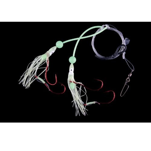 Special natural bait rig that is designed for securely rigging strips of fish, squid, or mussel meat. Thanks to the double hook feature, the number of missed bites is reduced significantly. The fluorescent parts, as well as the two octopuses offer additional attraction in the deep dark waters.length: 1,85 m Hooksize: 12/0 line Diameter: 1,2 mm